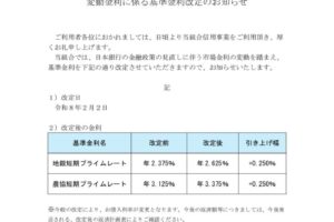 変動金利に係る基準金利改定のお知らせ